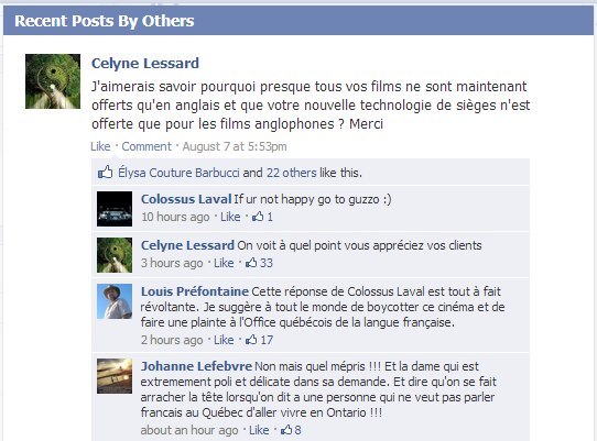 Enfin, il est intéressant de noter que la déclaration de Cinéplex ne règle pas tout. Pour le coup, de nombreux internautes demandent des comptes au sujet de la question posée à l’origine de la crise. On se retrouve donc avec une nouvelle problématique sur le feu, et pas des moindres : la place de l’anglais VS le francais à Montréal. Chaud devant…